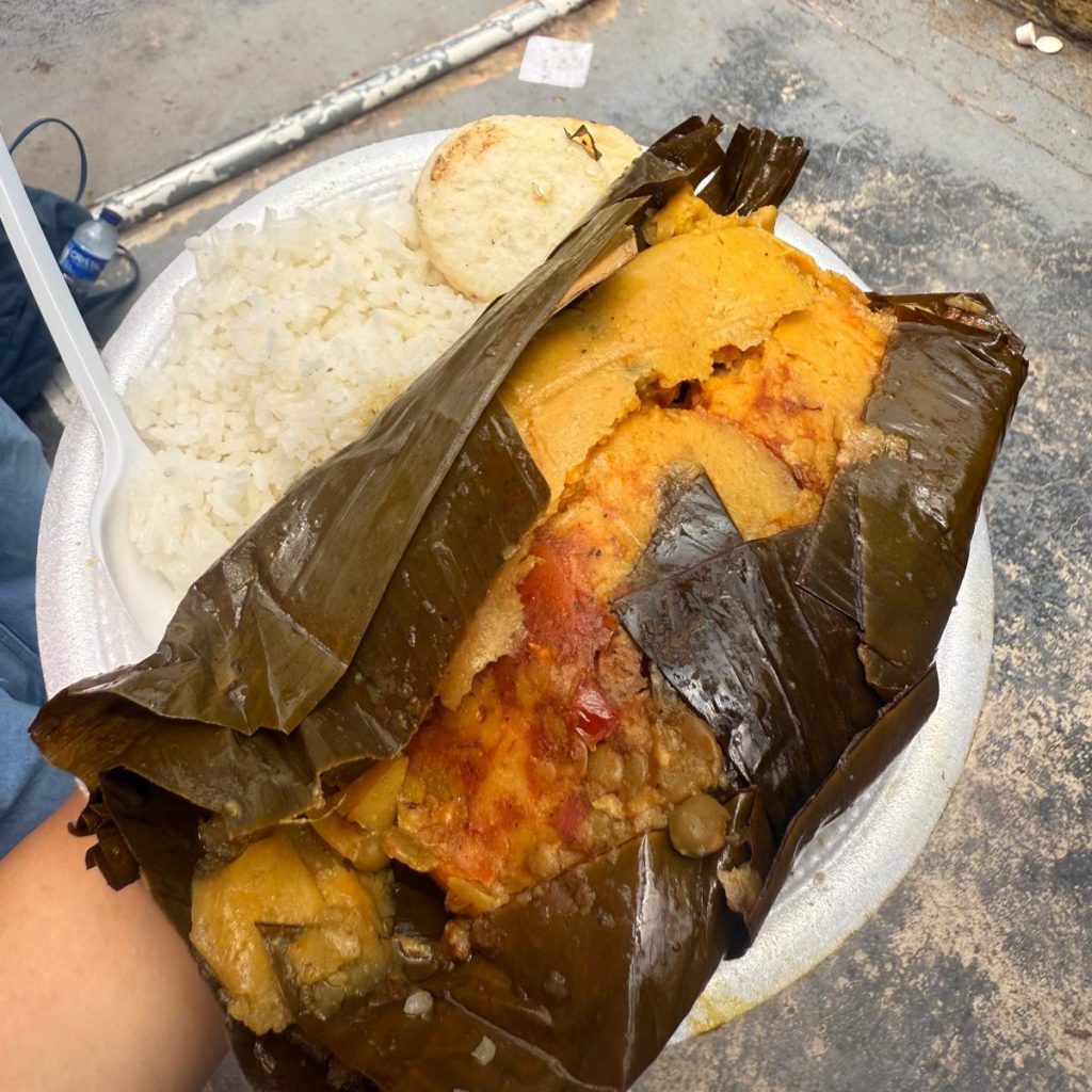 In der Woche vor dem Kulturtag gab es jeden Tag ein anderes Thema. Einmal stellten die Schüler verschiedene Länder vor, an einem anderen Tag zeigten sie Musikrichtungen wie Hip-Hop oder Salsa. Am letzten Tag wurde auf dem Fußballfeld der Schule alles zusammen präsentiert, mit den bunten Kostümen und viel Musik. Jede Klasse war dabei, von den Kleinsten bis zu den Ältesten, und alle waren voller Begeisterung. Am Sonntag fand dann der eigentliche Kulturtag statt, zu dem auch viele Eltern gekommen sind. Ich habe meiner Englischlehrerin beim Grillen geholfen. Es war sehr heiß, aber die fröhliche Atmosphäre hat das völlig in den Hintergrund gerückt. Das Essen wurde verkauft, und mit dem Geld, das gesammelt wurde, werden neue Materialien und Utensilien für die Schule gekauft. Wir durften auch typisch kolumbianisches Essen probieren, zum Beispiel Tamales: eine Mischung aus Fleisch, Kartoffeln, Reis und Erbsen, eingewickelt in ein großes grünes Blatt und gedämpft. Es war sehr lecker und hat perfekt zu dem Tag gepasst. Die Freude und der Stolz der Schüler waren überall zu spüren. Für mich war dieser Tag einer der schönsten Momente hier in Kolumbien.