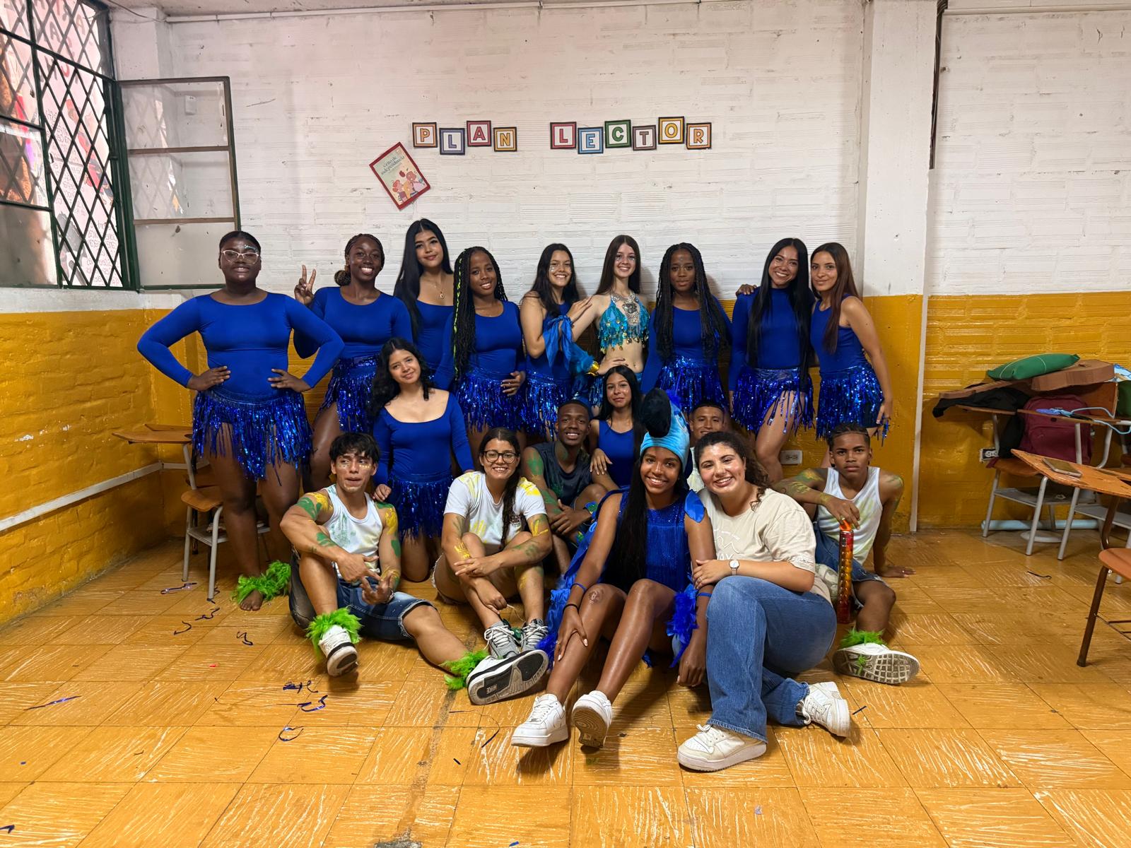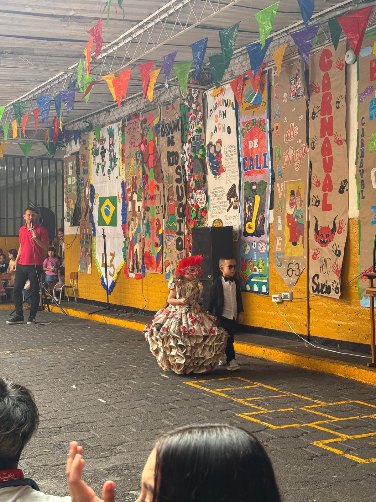 Ein besonderes Highlight war der große Kulturtag der Schule. Diese Feier findet einmal im Jahr statt und ist für die Schüler etwas ganz Besonderes, weil sie Kulturen aus der ganzen Welt vorstellen. Schon in den Wochen davor war die ganze Schule voller Musik, Farbe und Energie. Überall wurde getanzt, gesungen, gebastelt und gelacht. Ich durfte mit meiner Profe und der 11. Klasse das Land Brasilien begleiten. Sie führten einen brasilianischen Tanz mit portugiesischer Musik und traditionellen Kostümen auf. Außerdem gab es Tänze aus anderen Ländern wie Italien oder aus verschiedenen Regionen Kolumbiens, jede mit ihren eigenen Kleidern, Rhythmen und Traditionen. Die Eltern der Schüler haben viele der Kostüme selbst gebastelt. Eine Mutter vom Kindergarten hatte sogar für ihre Tochter ein Kleid aus Zeitungspapier gemacht, das wunderschön aussah.